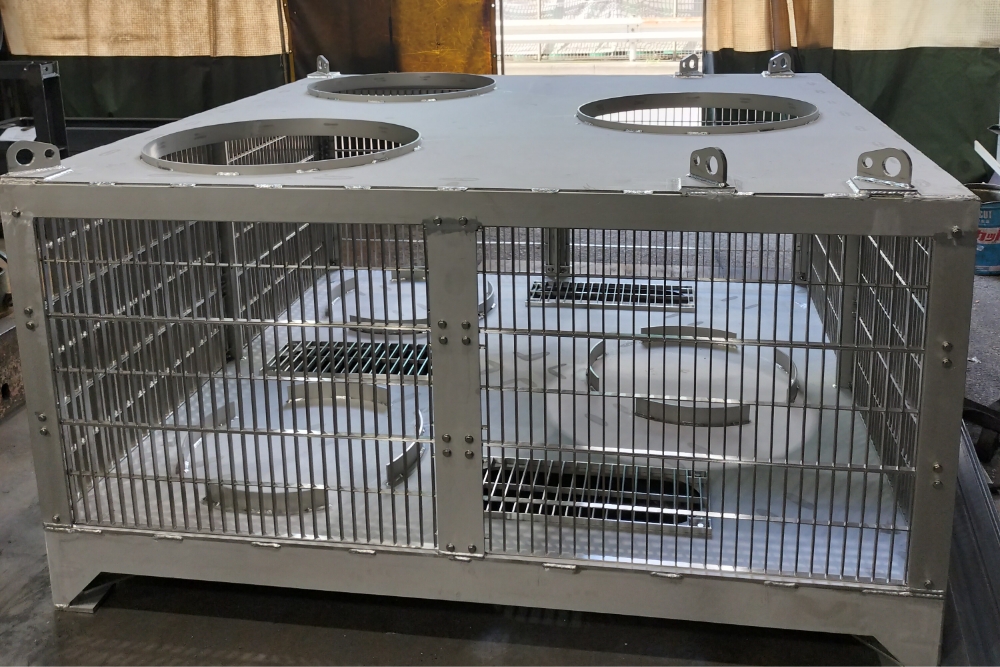 | 主な仕事内容 | ブラスト装置の筐体、送風機の部品、プレス部品、タンクの溶接。 材質は鉄、ステンレス、アルミ。 手のひらサイズから重量物(~2t)を製作。 プレス機を使用し鉄板の曲げやロール加工後、溶接施工。 |